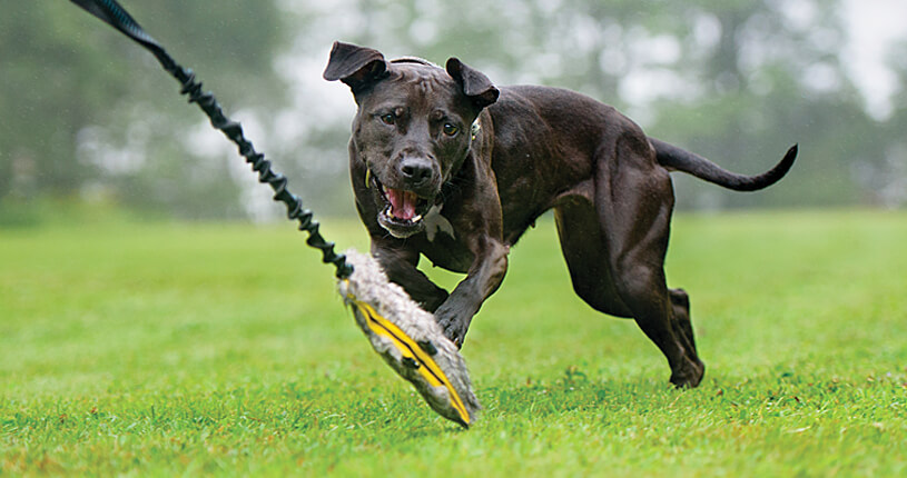 4 My Merles Creations is a Canadian company that has a line of fun and well-made tug toys for agility and flyball dogs. The 4 My Merles Bitty Bumpy Bungee Fur Tail tug has a bungee handle made with colorful webbing. It has a 3.5" bite area made of faux fur plus two 3"-long reinforced faux fur tails....