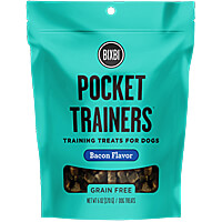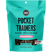 Bixbi Pocket Trainers are small treats for big feats! Each small, moist treat is short on calories, but big on flavor. As a training aid, Pocket Trainers provide a tail-wagging incentive for every dog.  Less than 4 calories per treat. Made in the USA. Packaging: 6 oz. resealable bag. Ingredients: Sa......