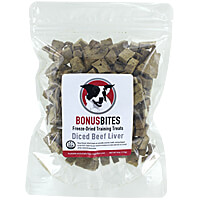 Named in memory of a very special dog that belonged to the owner of Clean Run, Bonus Bites Freeze-Dried Training Treats are 100% single protein treats. Not only are the chicken liver treats a perfect size for training, they are super high-value. Plus these treats are excellent sources of copper, iro......