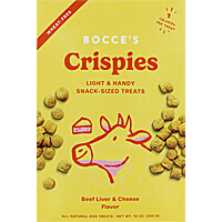 Bocce's Bakery Crispies are lightweight, bite-size treats with a crispy texture, and they're made with only 6 real food ingredients. At only 3 calories per treat, Crispies are perfect for training. Made in the USA in small batches. Packaging: 10 oz. box with inner bag contains LOTS of treats! Ingred......