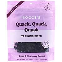 Perfectly sized training bites to reward your dog and only 4 calories each! These duck and blueberry treats are moist, easy to feed, and feature simple ingredients. Bocce’s Bakery started in a tiny West Village kitchen with a mixer, an oven, and a scruffy mutt named Bocce with the belief that dogs d......