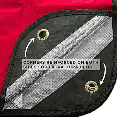 This blanket reflects up to 90% of heat and is windproof and waterproof. During the hot months when you're crating outdoors with your dog, face the reflective side out to keep sun and heat away. During colder months, cover your dog's crate with the reflective side facing in to keep available heat in.