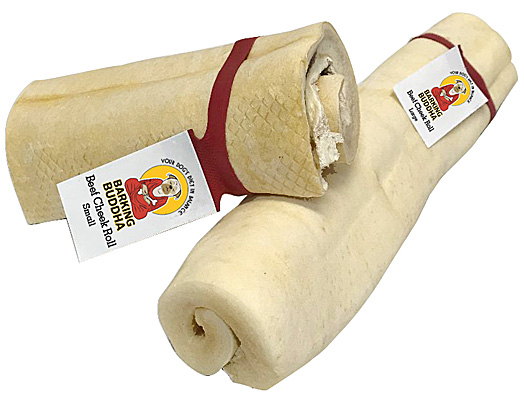 Beef Cheek Rolls are satisfying and easily digestible natural chews. As the dog chews, the cheek roll comes apart in small pieces that the dog can safely eat, unlike rawhide which comes apart in large chunks or strips that the dog can swallow whole and are difficult to digest.