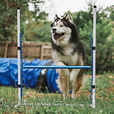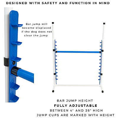 Leap into fun with these 4 adjustable bar jumps! Expertly crafted with jump cup strips to keep your dog safe, they're made of lightweight, durable materials perfect for indoor or outdoor play. They're ideal for pups of nearly every size.