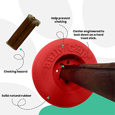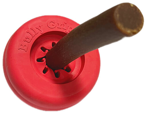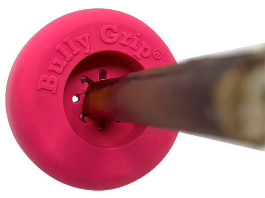 Made with lab-certified non-toxic, high-quality rubber, the Bully Grip is engineered and designed to grip a treat stick tightly to prevent your dog from ingesting large pieces that could result in choking or a stomach blockage while enjoying their bully sticks. It's simple and easy to use, just twist the bully stick into the Bully Grip!