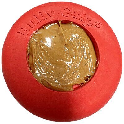 The Bully Grip also doubles as a toy—it bounces, wobbles, and rolls—or you can add a lickable treat!