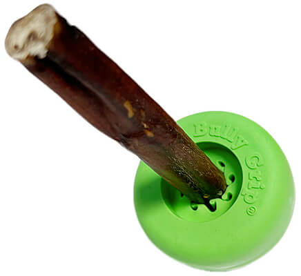 Made with lab-certified non-toxic, high-quality rubber, the Bully Grip is engineered and designed to grip a treat stick tightly to prevent your dog from ingesting large pieces that could result in choking or a stomach blockage while enjoying their bully sticks. It's simple and easy to use, just twist the bully stick into the Bully Grip!