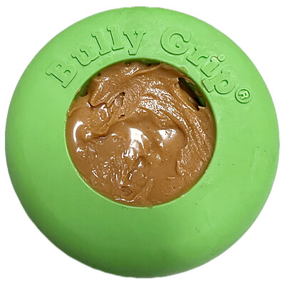 The Bully Grip also doubles as a toy—it bounces, wobbles, and rolls—or you can add a lickable treat!
