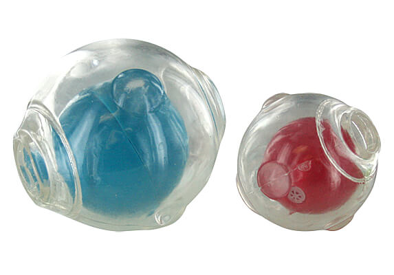 Dogs can't resist these squeaker toys. They love the sound and the squeakability! Inside the see-through outer ball, there's a squeaker ball with dual-squeaker technology so that the toy makes different sounds depending on how the ball is squeezed.