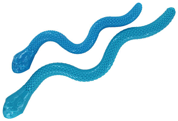 One of our most popular canine enrichment toys is now available in a larger size. The Original Slithering Treat Snake is 16-1/2" long and 1-1/8" in diameter, and it has a squeaker in the head. The Large snake is 23-1/2" and 1-1/2" in diameter, and does not have a squeaker.