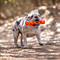 Chuckit Air dog toys feature a hollow, web-like design that facilitates healthy air flow into your dog's lungs during playtime, improving your dog's stamina and reducing downtime after intense games of fetch. Made from soft rubber that is gentle on your dog's mouth and features a bright orange color that makes it easy to find in grass, mud, snow, or water. And, it floats!