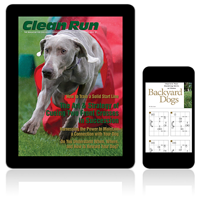 A few of the features: Linda Mecklenburg discusses double front crosses and blended front crosses, Laura Manchester Derrett helps you with your start-line training, Sandy Rogers looks at the challenges of getting and maintaing a connection with your dog, Jubie Rueschenberg details the when, where, and hows of delivering rewards, Dr. Kurt Schulz and Dr. Peter Lotsikas detail new options in the management of elbow arthritis, Frankie Joiries shows us how to teach our dog left- and right-foot targeting, Ann Croft shares ideas for training smart when you can't train a lot, Deborah Jones shares lesson plans for week 8 of a FOCUS and impulse-control class, Annie Pyle puts up exercises for circle work, Jamie McKay discusses the curve balls that you might have to deal with at agility competitions, Stuart Mah presents exercises for interval training, and much more! 68 pages.