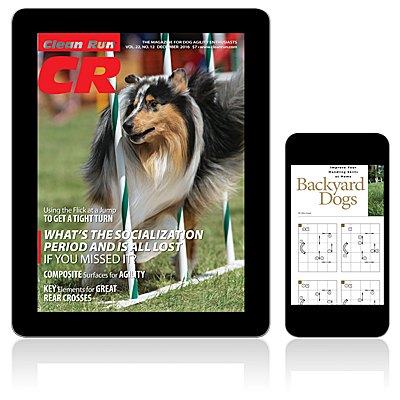 A few of the features: Mary Ellen Barry demonstrates the OneMind Dogs flick at a jump technique, Sandy Rogers identifies what skills you need before you start rear-cross training as well as the key elements for great elements, Tori Self talks about smart training vs. obsessive training and overdrilling, Nancy Gyes shares drills to work on lead-out pivots skills and front crosses, Nini Bloch starts a two-part series on early agility training, Tom Mitchell explains the socialization period and what happens if we miss it, Brenna Fender reviews composite surface options in our "Underfoot" series, Cindy Deak explains what it takes to become a judge, Kristy Netzer continues her series on how to train legendary lead-outs, Frankie Joiris and Chris Ott conclude their series on puppy training, Deb Gross warns against extreme canine conditioning exercises, how to build a ribbon wreath, and more! 68 pages.