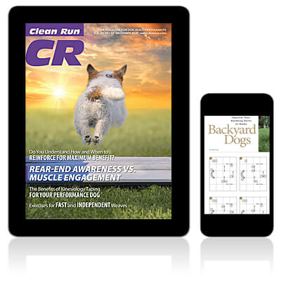 A few of the features: Lisa Vettoretti demonstrates how Kinesiology taping can be incredibly beneficial to animals in sports; Rachel Downs and Liz Randall complete their series on how and when to apply reinforcement; Jo Sermon explains what to do when it all goes horribly wrong in the ring; Debbie Harrison shares compulsory skills for the weave poles; Bobbie Lyons explains how rear-end awareness and rear-end muscle engagement are two different things; Jubie Rueschenberg talks about selecting a performance puppy; Sandy Rogers discusses what never changes in agility; Nancy Gyes puts up jumpers training setups that can be used with all levels of dogs; Greg Derrett explains the challenges of creating level-appropriate courses that are also nested; Steve Schwarz sets up backyard exercises for tunnel practice; Carolyn McIntyre looks at dew claws and the issue of whether they should be removed or not; veterinarians explain how to incorporate massage into your dog’s athletic routine for warm up, cool down, and recovery; John Reid shares sequences for small spaces; and more. 62 pages.