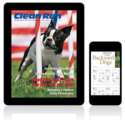 A few of the features: Rachel Sanders shows you how to teach your dog "Right" and "Left" directional cues, in the seventh article of a multiple-part series Linda Mecklenburg completes her explanation of foundation and intermediate jump training, experienced agility competitors share advice for preparing your dog to compete in different venues with different rules, Nancy Gyes shares some fast and furious tunnel exercises with her "R" drills, in the first of a four-part series Undine Bistany looks at the rear cross, Webb and Leslie Anderson explan why size does matter, a look at group fitness classes, Nancy Gyes shares a program for training the chute to a new dog or fixing a problem chute performance, Sallie Sports Vet discusses how thyroid levels can impact a dog's performance in the agility ring, Terry Ryan helps instructors plan what to teach and how to teach it, Kristy Netzer shares her tension-leash method for training independent weave pole entries, and more. 92 pages.