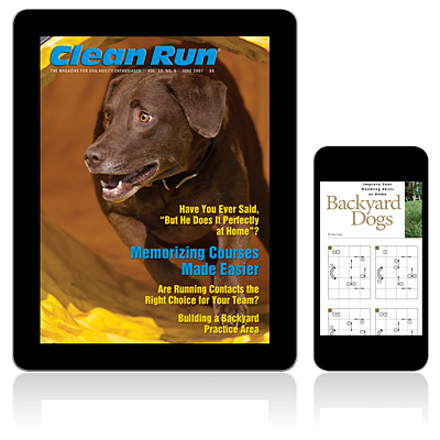 A few of the features: Trainers share strategies for memorizing courses, Ali-Roukas Canova discusses the pros and cons of running contacts in the first of a four-part training series, Deborah Jones explains why your dog may perform like a champion in training but fall apart in competition, plans for constructing a safe and inexpensive backyard practice area, Francoise Joiris explains how to use a variety of targets in your agility training in the second of a two-part series, Nancy Gyes continues her series on raising an agility puppy, Amanda Nelson looks at the challenges frequently seen at the NADAC Novice level and the skills you need to handle them, a review of the DVD Training Running Contacts with Stride Regulators by Barb Davis, cross training suggestions for your canine athlete, Nancy Gyes starts a new series of drills with the arrow pattern, and more. 84 pages.