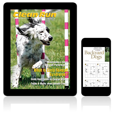 A few of the features: Linda Mecklenburg explains a jumping problem called Early Takeoff Syndrome, Dr. Julie Roos tells us what we need to know about kennel cough, Helix Fairweather concludes her three-part series on teaching your dog to love toys, Sandy Rogers continues her article on teaching the front cross turn cue from the ground up, Mary Ellen Barry provides maintenance training for the dogwalk, Andrea Dexter looks at how you can use real estate wisely on course, Steve Croxford demonstrates how to develop a plan for improvement that contains short-term and long-term goals, Jeff Boyer provides strategic tips for CPE FullHouse, Sally Silverman shares tips for sun protection and safety, Jane Killion looks at the start line as the first real obstacle for the Pigs Fly dog, and much more! 84 pages.