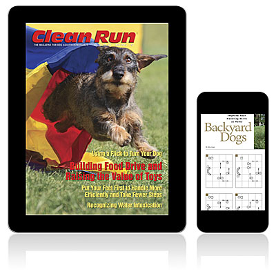 A few of the features:European trainer Katarina Podlipnik continues her series on improving your dog's motivation and speed, Mary Ellen Barry demonstrates the flick, Sandy Rogers discusses the important of footwork in agility and how you can make agility easier by working on it, Denise Flaim explains the dangers of excessive water intake (water intoxication), Nancy Gyes shows how to take your retrieve to the next level, Brenna Fender shares ideas for proofing, Drs. Brittan Jean Carr and Sherman Canapp look at achilles tendinopathy in the agility dog, behaviorist Tom Mitchell talks about arousal, Helen King continues her series on training a dog when "run faster" isn't an option for you, Bobbie Lyons presents exercises for improving hind limb stability, Kristy Netzer shares class plans that require little movement of equipment for multiple levels, Sally Silverman interviews U.K. handler Dawn Weaver, Daisy Peel analyzes a course to look for the simple and straightforward handling solutions, and Julie Casper discusses the importance of balancing trace elements to maximize nutrition for your dog, and more! 68 pages.