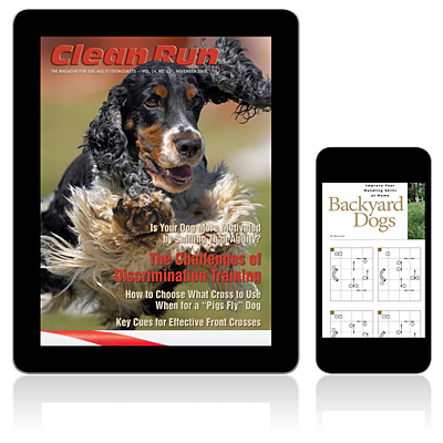 A few of the features: Pam Reid discusses the challenges of teaching our dogs to discriminate among complex choices at speed as well as ways of approaching the challenges, Greg Derrett explains how deceleration and position affect the efficiency of a front cross in the first of a multiple-part series, a group of trainers offer positive solutions to get a sniffing dog's head off the ground and back into the agility game, Ann Croft continues her series on an alternative way to train the end behavior of the four-on-the-floor contact, Linda Mecklenburg continues her handling series with a look at how to perform the four basic turns in conjunction with the turning obstacles when cued with forward motion and with no motion, Debbie Gross Sanders shares some indoor strengthening exercises you can do on a staircase, Jane Killion discusses why, when, and how to use front crosses and rear crosses with your Pigs Fly dog, Mary Ellen Barry shares some methods for teaching your dog to retrieve, Dr. Sherman Canapp explains stem cell therapy for the canine athlete, Brian Ferrand writes about teaching hand touches and applications for the behavior in agility training and handling, Diana Barber presents ideas to help instructors motivate and inspire their students to learn and practice agility on their own, and much more! 92 pages.