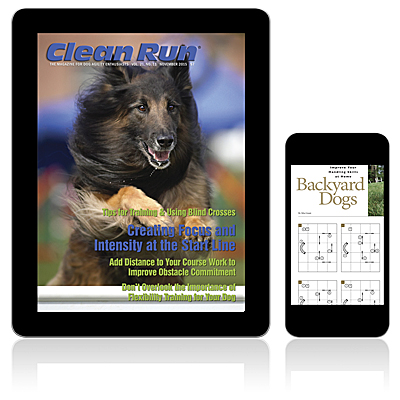 A few of the features: Stacy Winkler continues her series on how to make your rewards more effective so that you can improve trained behaviors, Mary Ellen Barry demonstrates the blind cross, Nancy Gyes looks at adding distance to our course work training, Bobbie Lyons presents exercises for flexibility training, Kathrine McAleese discusses dealing with disappointment and getting back up and focused, Dr. Brittany Jean Carr and Dr. Sherman O. Canapp take a look at platelet rich plasma therapy for the canine athlete, Antoine Alston explains functional fitness, Kristy Netzer shares a class plan that focuses on blind crosses, Brenna Fender takes a looking inside Dogwood Training Center," Sally Silverman interview Hungarian competitor Zsófi Biro, behaviorist Tom Mitchell looks at training a default state of calmness for our dogs, and more! 68 pages.