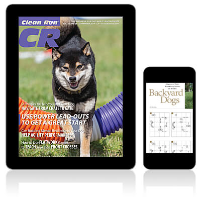 A few of the features: Sandy Rogers explains the concept of a "power lead-out" and the impact it can have for your team; Connie Sellers shares flatwork games for rear cross training; Bobbie Bhambree discusses the importance of mental resilience so your dog can cope with stress and maintain focus and self-control in different environments; Jamie McKay presents strategies for management and training that can be used to help you and your dog safely navigate through the crowded trial environment to get from the crate to the starting gate. Nancy Gyes puts up drills for practicing blind tunnel entrances; Jo Sermon shares exercises for introducing box work in sequences; Brenna Fender looks at how you can cope with stress or anxiety at a trial and calm your mental state; Stacy Winkler continues her series on adding distance to your stopped contact performance; John Reid puts up training sets that fit in a small space; and more. 52 pages.