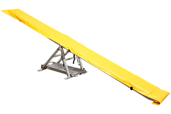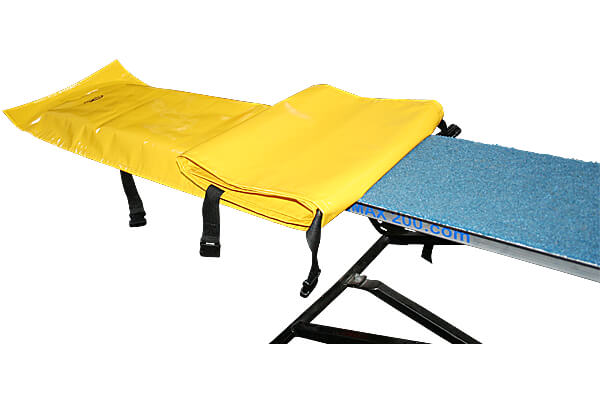 The Seesaw Contact Cover is made from the same durable, UV-resistant 550 gsm plastic-coated vinyl (PVC) as the Deluxe Tunnel Bags. The cover is generously sized to fully cover the rubberized surface of any regulation seesaw. Adjustable nylon straps are sewn to the cover and fasten underneath the seesaw with quick-release buckles to keep the cover securely fastened to the obstacle even in the wind. The extra fabric at the end of the seesaw can be tucked under the obstacle.
