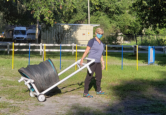 Agility tunnels are a big investment. The Clip and Go Agility Tunnel Mover is designed not only to make it easier to move your tunnel around, but to help you avoid damaging your tunnel while moving and storing it. You can store your tunnel on the Tunnel Mover in between uses. And, if you train outdoors, keeping your tunnel off the ground is good for both your tunnel and the grass!