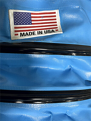 The supporting 0.15" diameter spring steel wires are heat-welded in place and enclosed with a thick, heat-bonded PVC scuff strip extrusion. There is a heavy-duty, 1/2" thick hoop enclosed in PVC at each tunnel opening to provide additional structural integrity and safety.