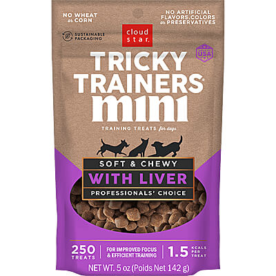 Just the trick for training your dog, Cloud Star Tricky Trainers Mini are soft, one-bite rewards. These small treats are 3/8" in diameter like regular Tricky Trainers, but they're half the thickness. They may be little, but they're big on flavor and will be a high-value treat for training your dog.