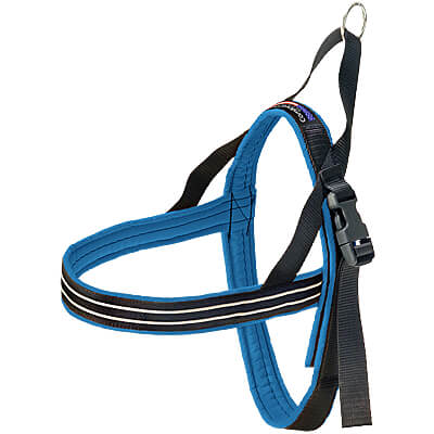 The lightly padded nylon ComfortFlex Sport Harness offers you and your dog safety, simplicity, and security. Unlike many harnesses, the ComfortFlex Sport Harness is designed to protect sensitive areas, like your dog's throat and underarms, during any level of exercise. The dual-purpose "handle"/leash connection drops back along the dog's spine. Due to the position of this leash connection, pressure is always directed to the dog's chest, never riding up on his throat. This simple yet effective ergonomic design also lets your dog retain full range of motion without having to worry about underarm irritation or chafing.