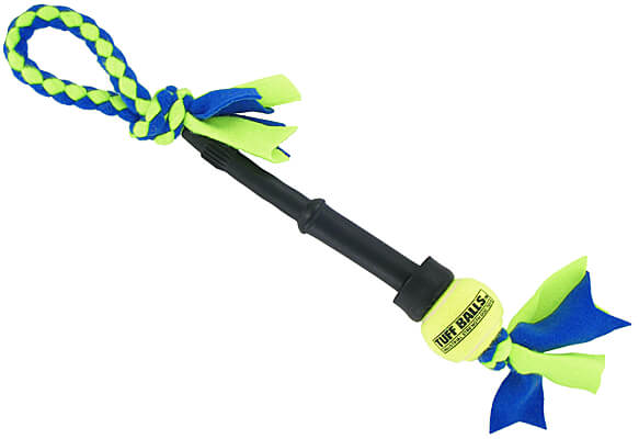 Da Udda Ball Tug features a 2.5"-diameter Tuff Ball rather than an ordinary tennis ball. Tuff Balls are designed for dogs. They have extra-thick natural rubber walls which provide extra durability. No chemicals are added for bounce as is done with "human" tennis balls plus the nonabrasive felt won't wear down a dog's teeth. Tuff Balls are also lead-free and are tested by an independent laboratory to make sure they do not contain any other heavy metals.