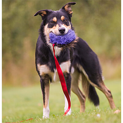 Tempt your dog with a fun game of chase and teach him to enjoy alternating between chasing and tugging. The long handled is ideal for owners of puppies and small dogs since you don't have to bend over to play.