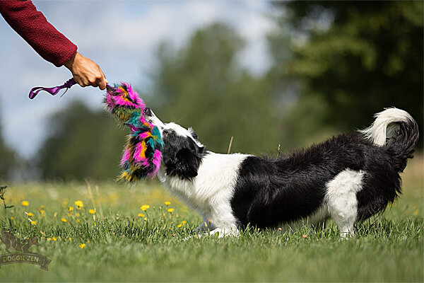 Note: Please note that Doggie-Zen toys are designed for active play between dog and handler. They are not designed for chewing. When playtime is over, move the toy out of your dog’s reach.