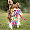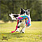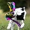 The Doggie-Zen Bungee Crinkle Tug is a big crinkle toy with a bungee handle that's designed for fun tug play. It is a further development of the Doggie-Zen Crinkle Cactus, but with an inner fabric to make it more durable for tugging.