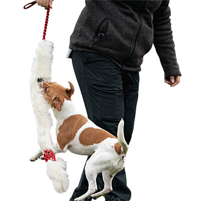 This toy is designed for puppies and smaller dogs. You can use it to tempt your dog with a fun game of chase. The long handle makes the toy ideal for owners of puppies and small dogs since you don't have to bend over to play.