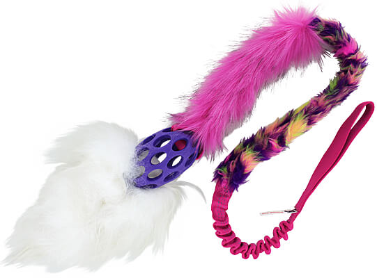 The Doggie-Zen Bungee Hol-ee Comet Chaser is a wonderful chase and tug toy that's designed with many different parts to entice and entertain your dog. The toy consists of a bungee handle, a long section of short-haired faux fur that leads to a long section of enticingly fluffy high-quality faux fur, and ends with a JW Hol-ee Football with a organically tanned fluffy Swedish sheepskin tail. The possibilities are endless with the Comet!