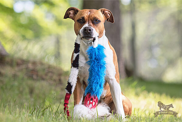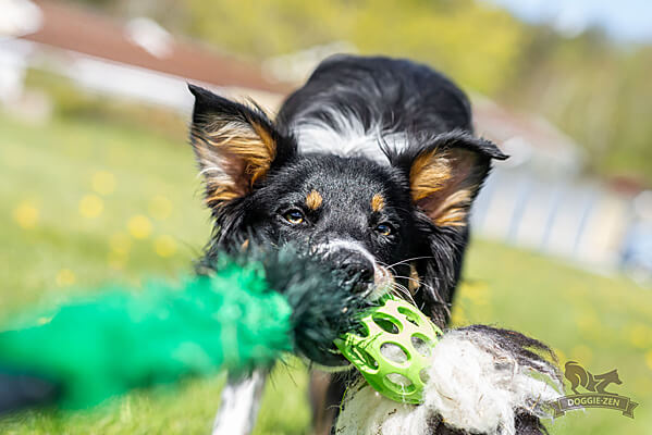Note: Please note that Doggie-Zen toys are designed for active play between dog and handler. They are not designed for chewing. When playtime is over, move the toy out of your dog’s reach.