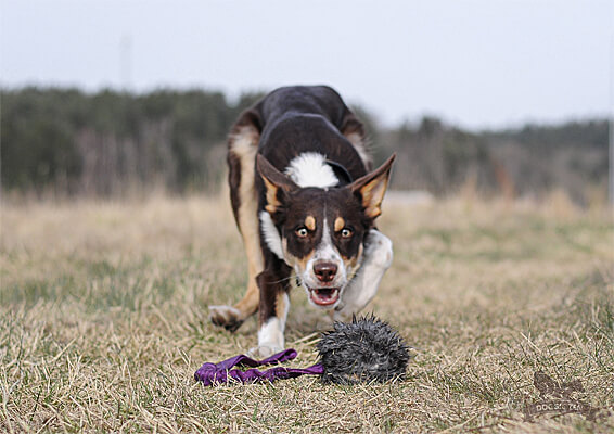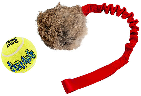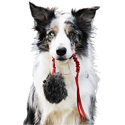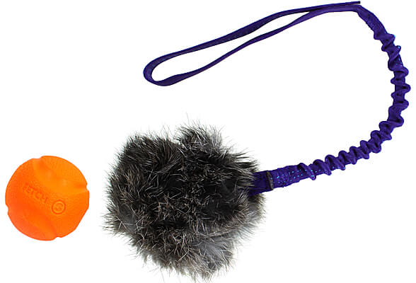 Doggie-Zen has taken their very popular and enticing Rabbit Ball and added a bungee handle. The ball is hidden inside a close-fitting rabbit skin pouch that is firmly tied with a rubber rope.