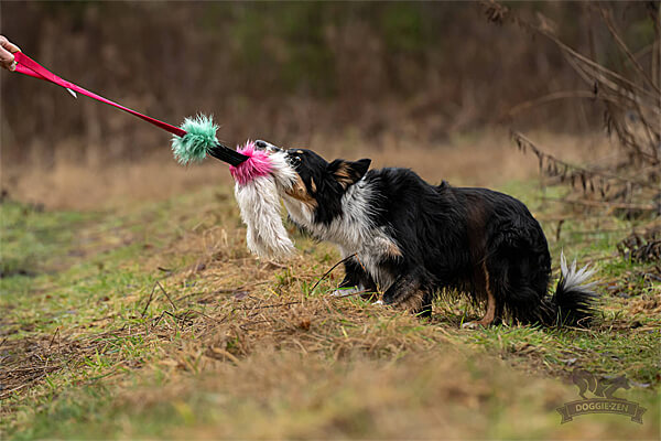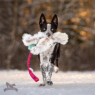Note: Please note that Doggie-Zen toys are designed for active play between dog and handler. They are not designed for chewing. When playtime is over, move the toy out of your dog’s reach.