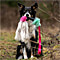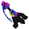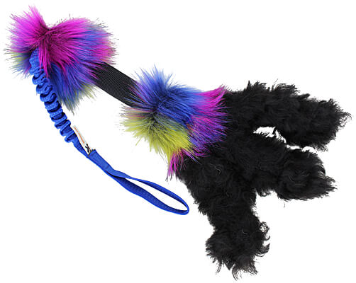 This is a new type of squeaker toy from Doggie-Zen. It contains an elongated squeaker pillow that squeaks a lot, hidden inside the black section of tubular nylon. There is a piece of luxury faux fur at each end of the squeaker tube, and the toy has three 8"-long flapping "arms" made from fluffy and enticing Swedish sheepskin.