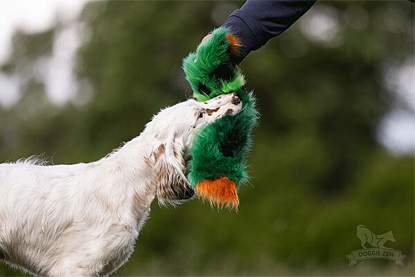 Note: Please note that Doggie-Zen toys are designed for active play between dog and handler. They are not designed for chewing. When playtime is over, move the toy out of your dog’s reach.