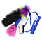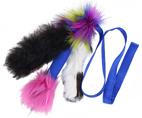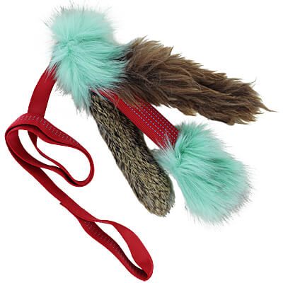 The Large Doggie-Zen Octopus Squeaker Chaser with Rabbit & Sheepskin consists of a long handle for fun games of chase, as well as three flapping "arms" to get the dog in the game. The middle arm contains a 1.25"-diameter by 5"-long squeaker tube, making the toy very easy for the dog to squeak, and has luxury faux fur at each end. A second arm is made of fluffy sheepskin from Swedish sheep, and the third is made of tempting rabbit skin from Swedish rabbits.
