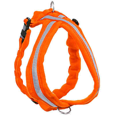 The eDog Hi Visibility Fleece Harness is a Y-shaped dog harness made from high-grade, double-layer fleece that's reinforced with strength-tested, matching color nylon webbing. It has all the same comfort features as the eDog Classic Fleece harness, but for safety purposes, high-visibility reflective tape is sewn to the top of the webbing. This is designed to keep your dog safe when walking in low light conditions.