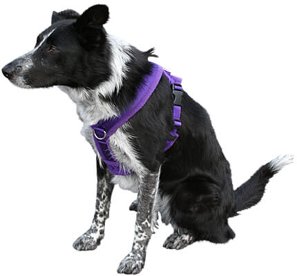 For example, we measured a 34lb. male BC in the office. His neck measures 14", which means the harness we choose needs to have a neck opening of at least 17.5".