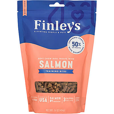 Pups of all life stages love the soft and chewy, bite-sized flavor in Finley's Salmon Soft Chew Training Bites. They are made with hormone and antibiotic-free proteins, and have 3 calories or less per treat.