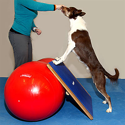 The FitPAWS Giant Rocker Board was designed just for dogs and has an extra-wide training surface. It also has a fulcrum bar that runs the entire length of the board, so it offers single-plane movement for more controlled exercises. If you place your dog so that he is parallel to the fulcrum bar, then the board will allow you to do side-to-side lateral work; if you place the dog perpendicular to the fulcrum bar than you can do front-to-back work.