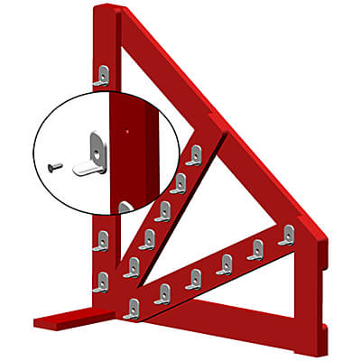 These are flat-back single jump cups for use on double or triple jumps. An ingenious mounting system takes away the pain of figuring out where to mount the jump cup so that the bar will be at the correct height when it's set. All you need to do is drill a hole at the correct height, such as 24", insert the pin on the back of jump cup into that hole, then fasten a screw through the pre-drilled hole in the jump cup. The jump cup will be at the perfect height. The pin also holds the jump cup in place, so the jump cup won't "spin" even though you are just using a single screw to fasten the cup.
