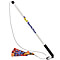 A lure is included with the pole. It is made of durable 100% polyester webbing that is resistant to outdoor elements and machine washable. The lure has a double layer loop at one end, four floppy tassels, 2 heavy-duty squeakers sewn into the tassels, and an overall length of about 12.5 inches.