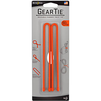 The 12" Nite Ize Gear Ties have a sturdy, bendable wire interior that holds it shape and a soft, durable, waterproof, UV-resistant rubber exterior. Gear Ties are reusable rubber twist ties. They are flexible, strong, and incredibly handy.