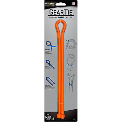 The 24" Nite Ize Gear Ties have a sturdy, bendable wire interior that holds it shape and a soft, durable, waterproof, UV-resistant rubber exterior. Gear Ties are reusable rubber twist ties. They are flexible, strong, and incredibly handy.